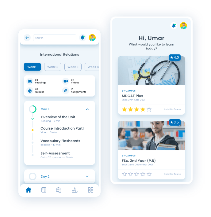 You can find week-wise readings, videos and tests from course activities or you can find readings and videos via search bar.